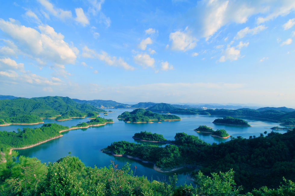 千岛湖即新安江水库,位于浙江省杭州市淳安县境内,小部分连接杭州市建德市西北,是为建新安江水电站拦蓄新安江上游而成的人工湖,1955年始建,1960年建成。距杭州、黄山各150公里,是长江三角洲地区的后花园,景区内碧水呈奇,千岛百姿,自然风光旖旎,生态环境佳绝,因湖内拥有1078座翠岛而得名。千岛湖因其山青、水秀、洞奇、石怪而被誉为“千岛碧水画中游”。