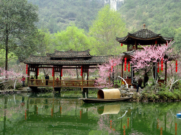 杭州西湖,杭州西湖早在唐代就已广栽桃树,如今的西湖苏堤、白堤上,一株杨柳一株桃,花开时翠彩相间,千姿百态。漫步湖岸,极为赏心悦目。