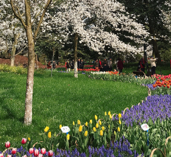 观赏地点主要在祖母桥、曲桥的水系边,远远看像油画一样;还有白色、粉色、浅紫色的玉兰花,现已大朵大朵地开满一树了。二月兰,曾经作为陪衬,起装点作用。