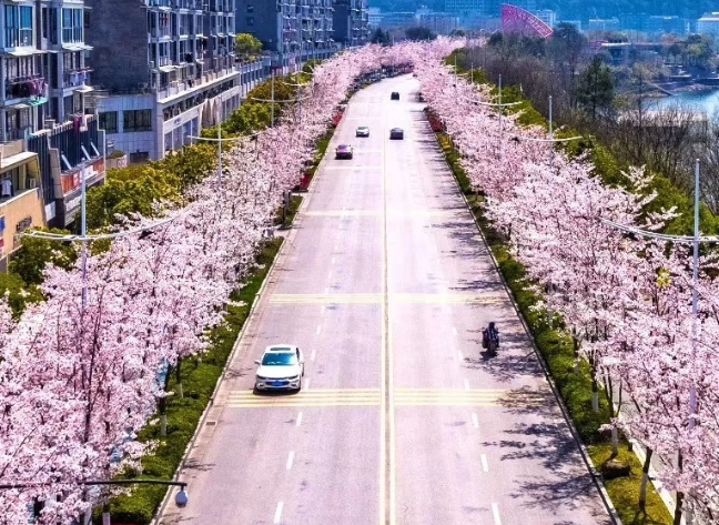 樱花大道可以看樱花,千岛湖樱花大道位于淳安千岛湖阳光路上,全长3000米,两侧栽种10年以上树龄的1000棵早樱,每到春季一起开放的早樱,化身一片片浪漫花海,时不时还会飘落着樱花雨。