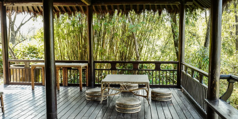 此为明末清初钱塘人邹孝直(名师绩)的庄园。泊庵草堂内最中间摆放着一个古式屏风,四周陈列着文房四宝及老式家具,左边则是一间临水茶室,果真是读书、喝茶、赏景的好去处。