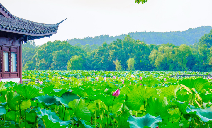 西湖周边的植物资源丰富多样。一年四季,各类花卉交替绽放飘香,不仅丰富了西湖的植物景观,也大大改善了杭州的环境质量。