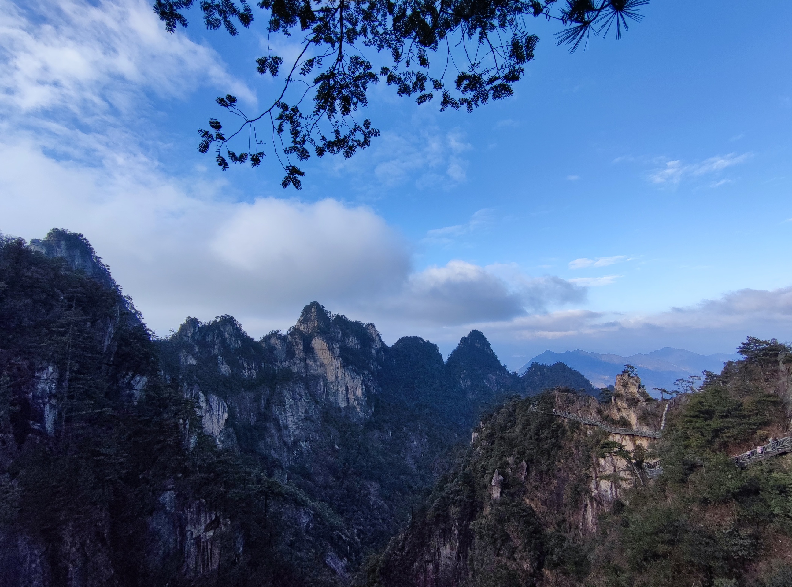 大明山地形高差达一千余米,因而山高谷深,层峦叠嶂,群峰耸立,气势十分壮观,气候条件及地质条件与黄山类似,所以被称为浙西小黄山。