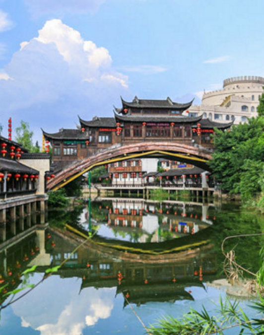 城内斗拱飞檐、车水马龙,还原了宋代都市风貌。5D实景体验剧《大地震》、大型实景演出《丽江恋歌》、实景战争剧《映山红》等数十大演艺轮番上演。
