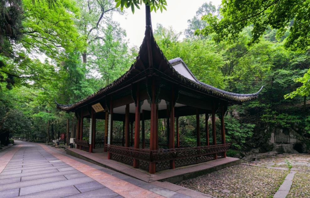 此外,每进殿堂建有宽敞平台,美化古刹环境。先后建成了大型《心经》壁、百狮群雕等,并于五百罗汉堂西北建冽泉,借假山叠石形成自然瀑布流入阿耨达池,池边建有“具德亭”,以纪念清初具德中兴灵隐之功。