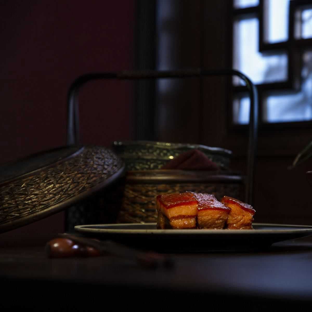 东坡肉以色香味俱全的特点成为当地一道地方名菜。采用肥瘦相间的五花肉进行焯水,之后皮朝下放入砂锅,放入姜、冰糖、酱油、黄酒等配料进行蒸制,其肉质鲜嫩美味,肥而不腻。
