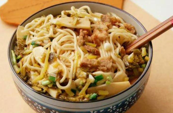 片儿川是杭州的一种着名汤面,由雪菜、笋片、瘦肉丝组成,鲜美可口。已有百余年历史,最早由杭州老店奎元馆首创,其特色在于雪菜和笋片的鲜美,让食客吃后回味无穷,片儿川面的价格适中且营养价值高,是杭州市民最喜爱的日常小吃之一。