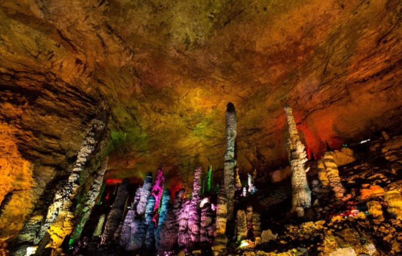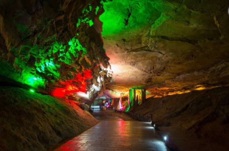 穹顶石壁滴水沉淀的石乳、石柱、石笋、石幔、石琴、石花,如水晶玉石,琳琅满目,异彩纷呈,美不胜收,有“地下迷宫”之美称。