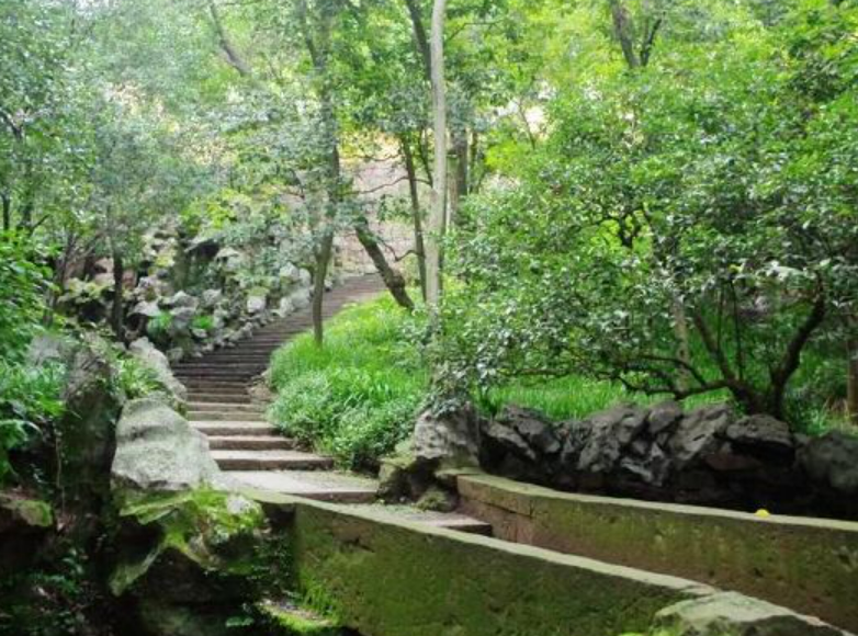 葛岭在宝石山西面,岭高一百多米。因相传东晋高士葛洪在岭上修道炼丹而得名,最高处的初阳台,传为葛洪炼丹所置。