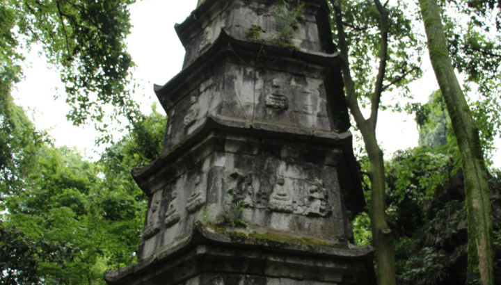 飞来峰龙泓洞口有理公塔,一名灵鹫塔,是杭州现存唯一的明塔;用石块砌成,六面六层,殊为罕见;全塔由下至上逐级收分,结构朴实无华,别具一格。