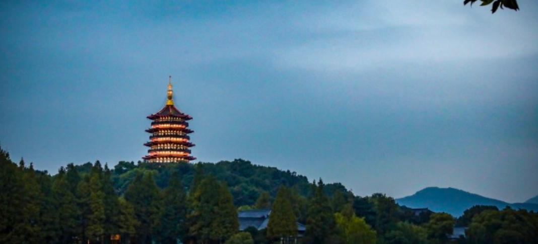 雷峰夕照位于西湖南岸的夕照山一带,以黄昏时的山峰古塔剪影景观为观赏特点。