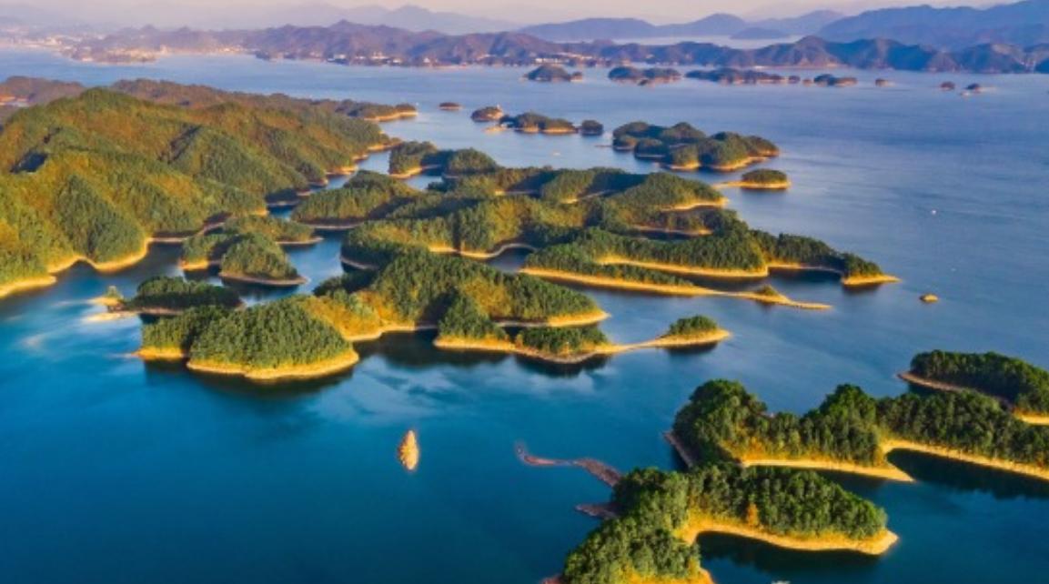 千岛湖,即新安江水库,位于浙江省杭州市淳安县境内,小部分连接杭州市建德市西北,是为建新安江水电站拦蓄新安江上游而成的人工湖,1955年始建,1960年建成。距杭州、黄山各150公里,是长江三角洲地区的后花园,景区内碧水呈奇,千岛百姿,自然风光旖旎,生态环境佳绝,因湖内拥有1078座翠岛而得名。