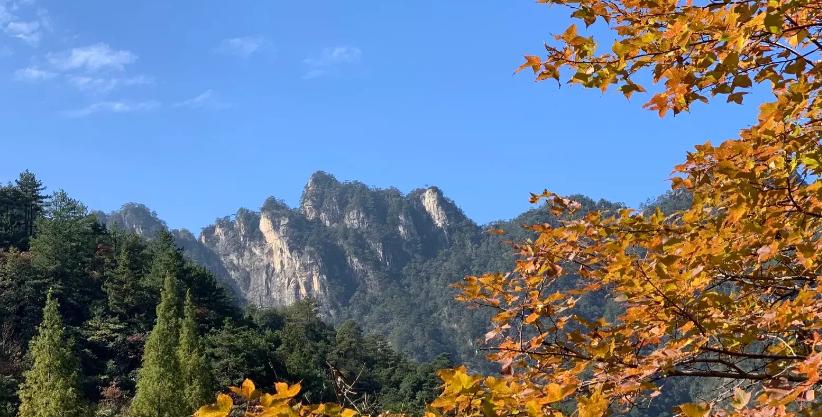 秋季里,从百步岭登上青松岭,然后沿游步道到达东岙头,一路上可看枫叶正红,群峰层林尽染之景。