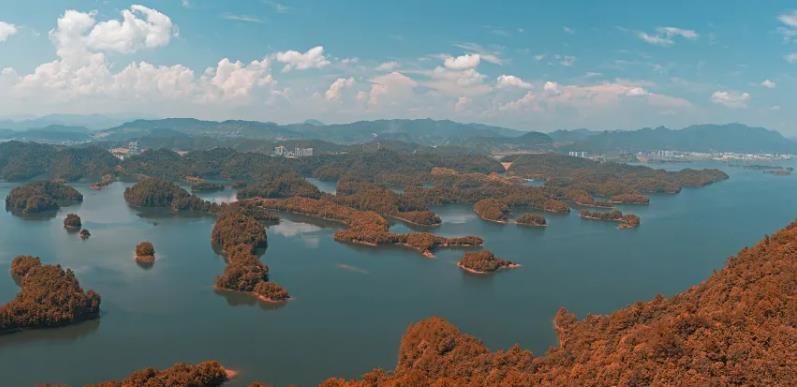 梅峰岛是千岛湖风景区人气较高的岛屿之一,位于中心湖区西端的状元半岛上。这里是千岛湖诸岛中登高揽胜的好地点,登上梅峰观景台,一座座小岛像抹茶蛋糕一般漂浮在湖面上,是千岛湖的标志景观,有“梅峰揽胜”之名。