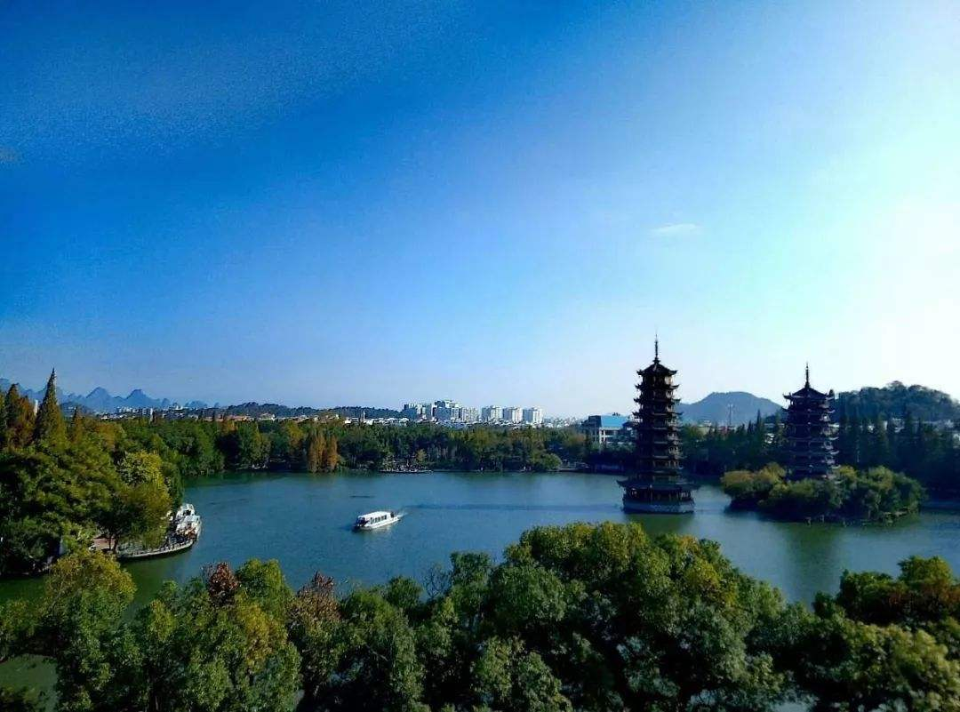 两江四湖·象山景区是桂林市中心区的漓江、桃花江、榕湖、杉湖、桂湖、木龙湖等环城水系的总称。其环城水系全长7.33公里,水面面积38.59万平方米。该工程最早形成于北宋年间960至1127年间,当时榕湖、杉湖、桂湖上舟楫纵横,游人如织,兴盛一时。