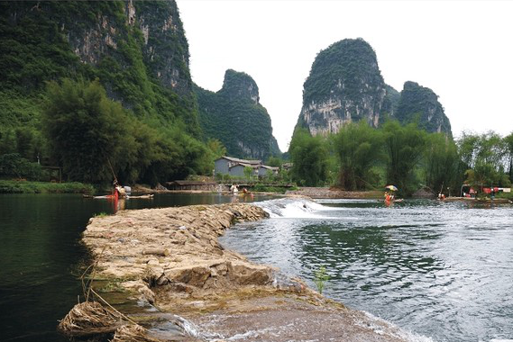 阳朔遇龙河可以漂流。遇龙河全长40多公里,宽约38-61米,深0.5-2米,河水常年清澈见底,而且水流缓慢。适合漂流观光的是富里桥到工农桥一段,全长有15.36公里,沿途总共会途径28道堰坝,平均每隔500米就有一个,包括了著名的富里桥、金龙桥、遇龙桥、工农桥等。全程设有正规码头7个,分别是金龙桥码头、遇龙桥码头、旧县码头、骥马码头(原朝阳码头)、水厄底码头、万景码头(原工农桥码头)、青厄渡码头。除此之外遇龙河沿线还有很多大大小小的文物古迹和山水田园风景,都是漂流的时候不可错过的两岸美景。