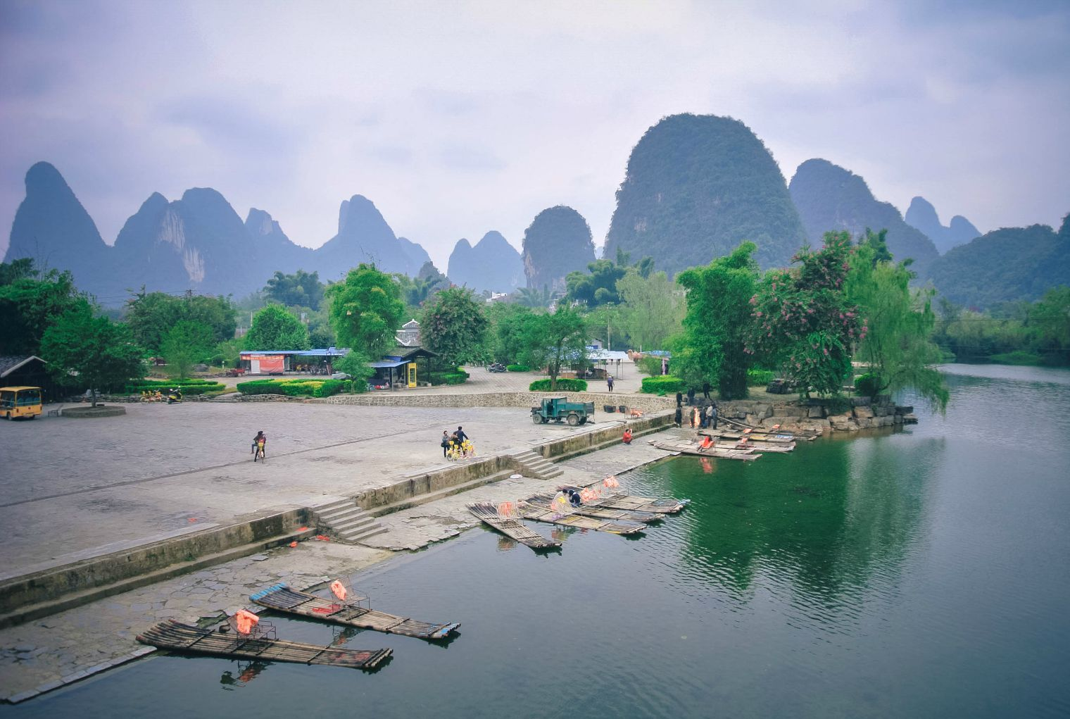 这里的古桥、古渡、古亭、古戏台、古庙、古寨、古树和古村落建筑群,比较完整地保留了原有的历史环境风貌。兴坪古镇拥有众多文物古迹,主要集中在圩上的古街及离圩场约2公里的渔村。该区域西临漓江,北接景点小河背、童子山,东南为古熙平县治遗址狮子旦和五指山、天水寨,面积4.5公顷。