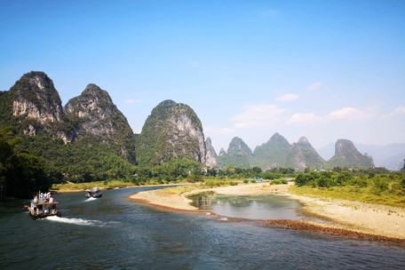 漓江游船游览的是漓江全景,方便欣赏沿途的风景。在漓江上航行时,途经杨堤、望夫石、九马画山、冷风渡、兴坪古镇等漓江上最著名的景点。