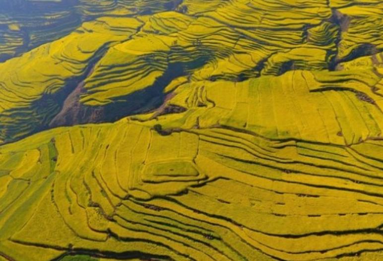 螺丝田也称牛街螺丝田,讹称螺顿田,地形特殊,梯田神似螺丝旋纹的形状,因此得名,梯田里油菜花等农作物错落有致、层次分明,时而如金龙盘窝,时而像梵高画笔下的多彩油画。