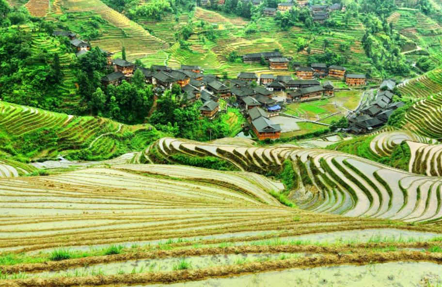 四:平安寨九龙五虎这是龙脊梯田景区平安寨两个观景台之一,央视及成龙电影都到此处取景,可见这里梯田是比较有代表性的,可能很多人都来拍过了。游客拍照需要自己找一些点,如九龙五虎到平安寨另一个观景点七星伴月的农耕小道,会有很多惊喜,这里交通方便,有观光车车往返,如果预定上面客栈,下午5:00之后可以自驾上来。