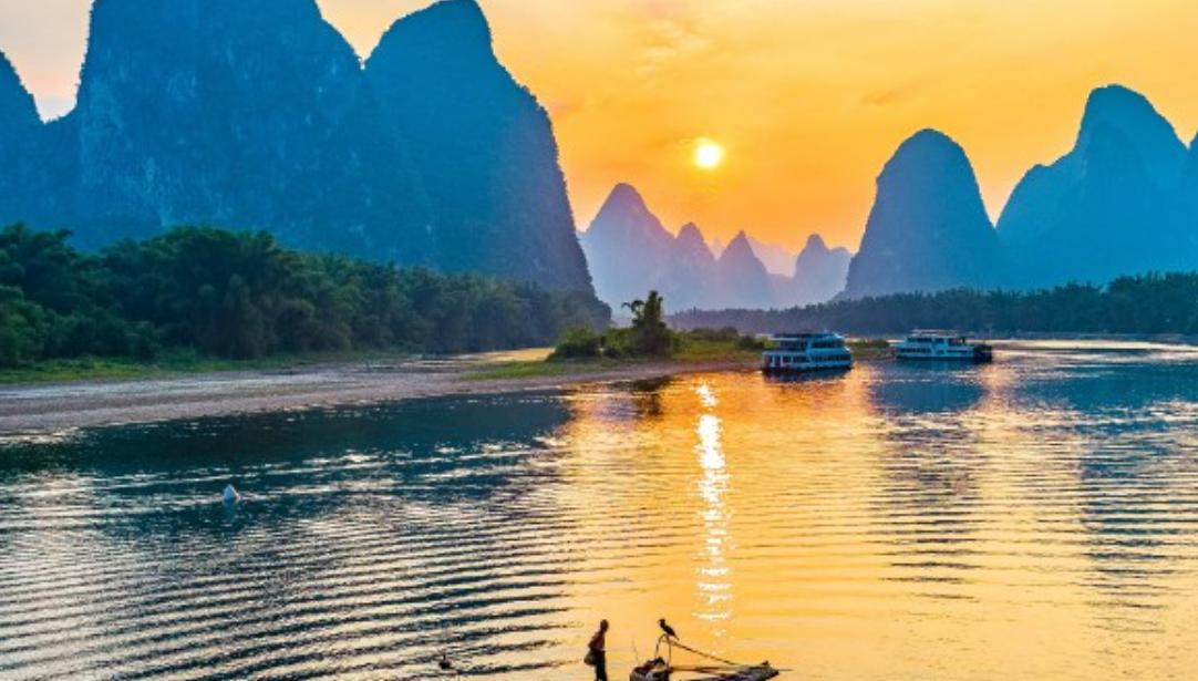 漓江景区:桂林市漓江景区位于广西壮族自治区东部,是世界上规模最大、风景最美的岩溶山水游览区之一。桂林市漓江景区是广西东北部喀斯特地貌发育最典型的地区,主要景点有冠岩、黄布倒影和仙人推磨等自然景观,人称“百里漓江、百里画廊”。