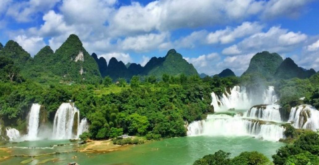 德天跨国瀑布景区:德天瀑布位于广西壮族自治区崇左市大新县硕龙镇德天村,中国与越南边境处的归春河上游,瀑布气势磅礴、蔚为壮观,与紧邻的越南板约瀑布相连,是亚洲第一、世界第四大跨国瀑布,年均水流量约为贵州黄果树瀑布的三倍,为中国国家AAAAA级旅游景区。还是《酒是故乡醇》和《花千骨》的外景拍摄地,神奇而美妙。