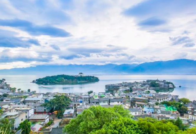 这里可以欣赏到优美的湖景,阳光透过云层,折射在湖水上,形成了“洱海神光”,以连绵的青山为背景,是摄影爱好者捕抓的风景大片。