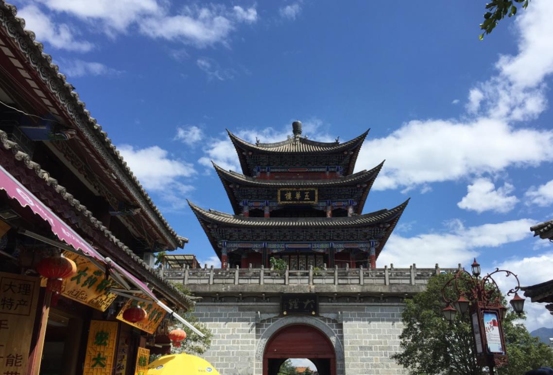 位于大理古城南门外1km的文献楼,素有古城第一门之称,是大理古城的标志性建筑。文献楼为两层歇山式土木石结构的镝楼,具有典型的白族建筑特色,矗立在砖石结构门洞上,雄伟壮丽。