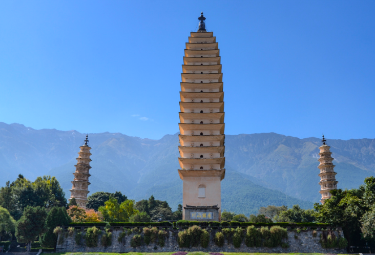 一、崇圣寺三塔大理崇圣寺三塔,距离下关14千米,位于大理以北1.5千米苍山应乐峰下,背靠苍山,面临洱海,三塔由一大二小三座佛塔组成,呈鼎立之态,远远望去,雄浑壮丽,是苍洱胜景之一。
