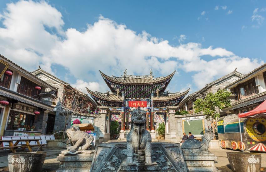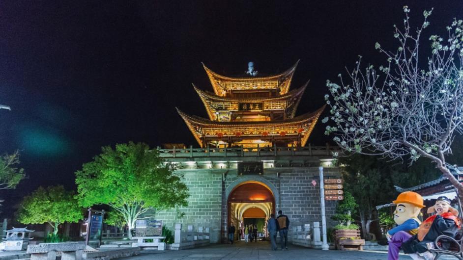 在古城,白天你可以逛逛复兴路,复兴路是古城的一条步行街,街两边有众多店铺,经营大理石雕刻、民族服饰和当地特色食品等当地特产。在各色店铺间穿行流连,可以淘些有民族特色的小东西,累了饿了,路边的小吃店也能吃到有特色的当地小吃。