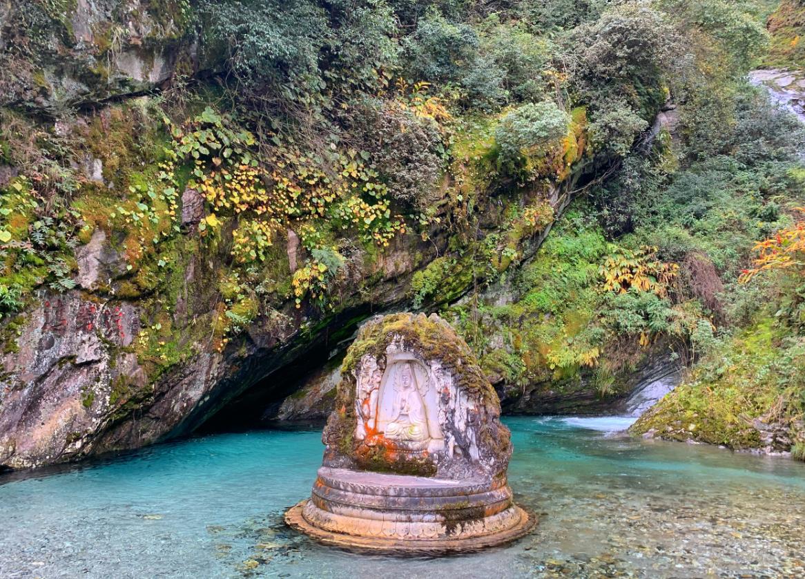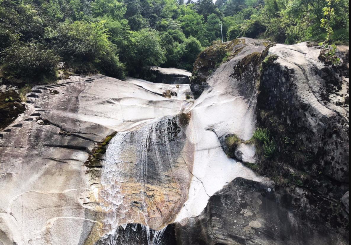 七龙女池是玉带云游路的第一个景点,距清碧溪4.5公里。七龙女池位于黑龙溪的中部,在深邃飞流的黑龙溪涧中,从下至上有天然的七个清泉水池;每个水池的西侧飞瀑跌滑而下,就如洁白的轻纱挂在壁上,给人有一种虚幻神秘的感觉。