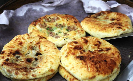 三、破酥粑粑喜洲破酥粑粑是喜洲镇最受欢迎的小吃之一,口味有甜、咸两种。粑粑原料为麦面,制时用上下两层炭火,将锅内油炕着的粑粑慢慢烤黄、烤香直至烤酥。粑粑外皮香酥内在绵软,且层次分明。