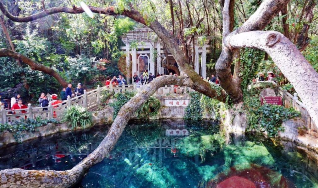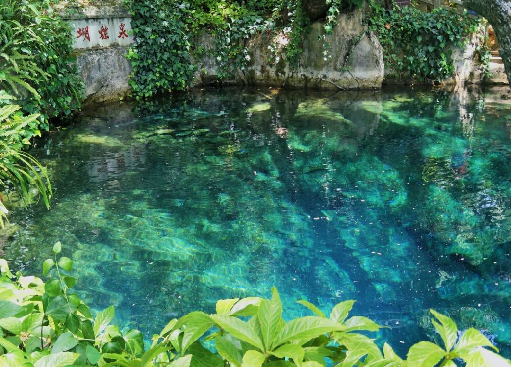 从下关乘车大概20多公里就可以到达蝴蝶泉,景区门口与泉水处有一点距离,步行大约十几分钟,景区内也有电瓶车可以到达泉水边。来到蝴蝶泉最大的看点是泉水本身,这里的泉水清澈见底,而且由于富含离子使得水呈现一种奇幻的蓝绿色,不时涌出一串串银色气泡。在泉水边有曲折的大树倒映水中,非常漂亮。
