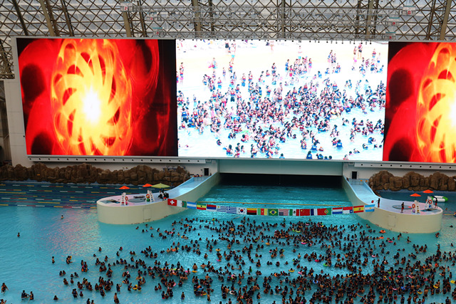 水上乐园最大的玩点一定就是造浪池了,各家也都在造浪池的规模、浪花高度、造浪池台表演等上面明争暗斗!天堂岛海洋乐园号称是全球最大室内人造浪池,就算是高峰期去也不必担心变成热锅中的饺子,空间和水温都会维持在一个舒适条件下。天堂岛的造浪池有两种造浪模式,一种是两米的大波浪,每天定点开,每次大概有十波浪,第二种就是持续不断的小波浪,别看这小波浪好像很舒适,如果处在靠岸位置,分分钟会被冲上岸!
