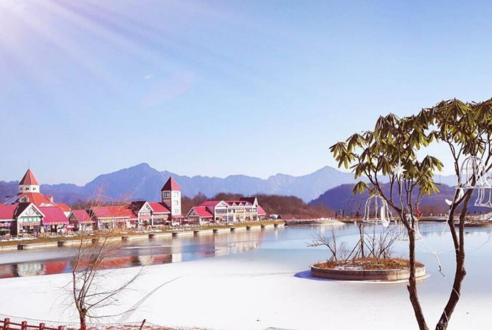 西岭雪山分前山和后山,前山为大飞水景区,是纯徒步观光景区,后山为滑雪场景区,冬季可以滑雪,其他季节则是观光和滑草。山上建有两段索道:交通索道(又称鸳鸯池索道)和观景索道。从景区大门进入后,乘坐交通索道,可直达半山腰的鸳鸯池接待中心,这是一片相对平缓的广场。夏季,在映雪湖玩水嬉闹,湖东侧可以玩滑草。冬季,滑草区变成滑雪者的天堂。