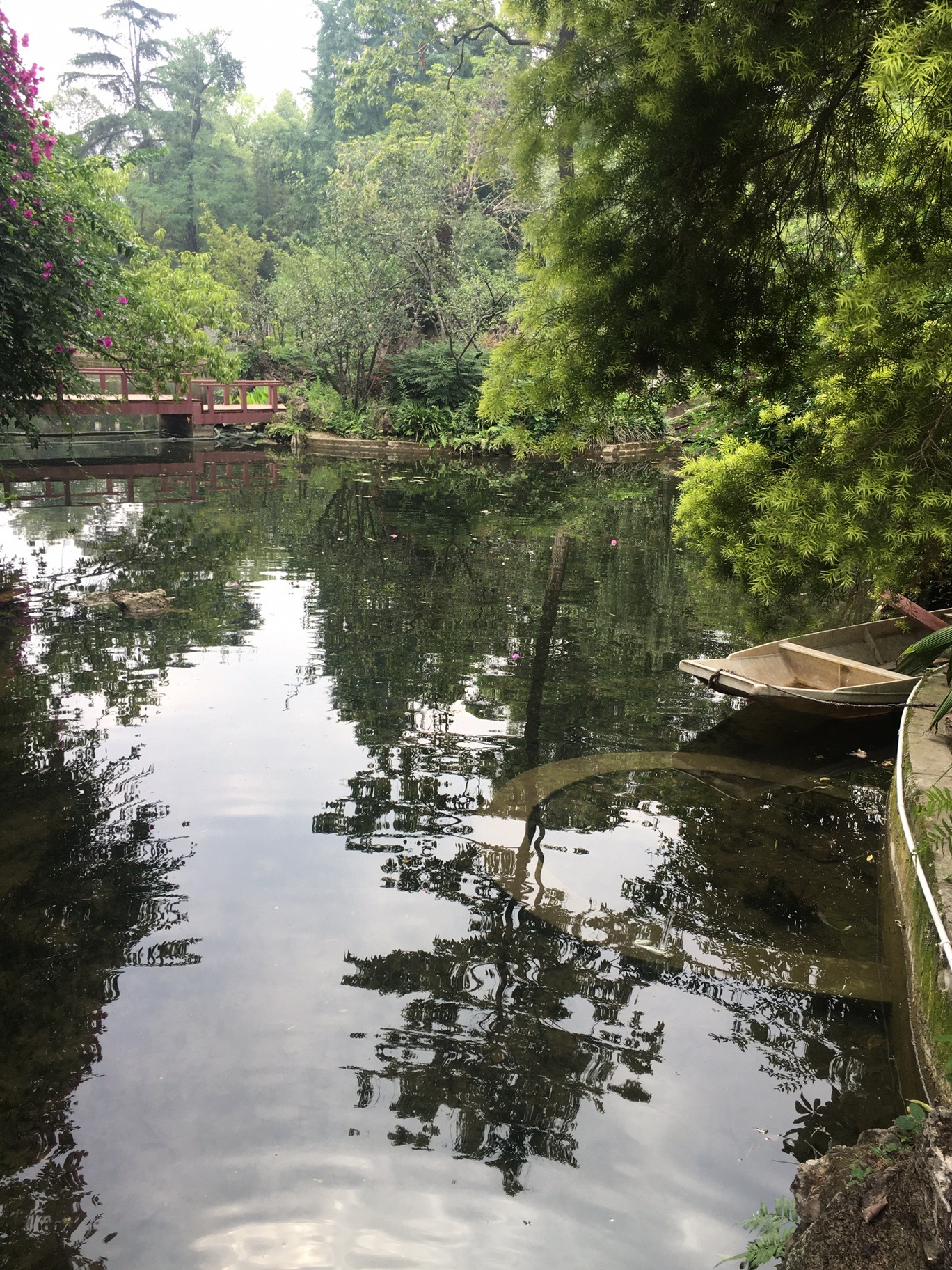 成都市百花潭公园位于成都市区西部的通惠门外。公园由盆景园、磊园、慧园、湖池区、廊桥及桃花林、银杏林、桂花林、梅花林等景区组成,已形成了自己的园林特色。整个公园构筑新颖,布局典雅,花木繁茂,竹树成荫,人工缔造的山石、瀑布、溪流、亭台分布其间,各呈其妙,趣味无穷,体现了“古、文、静、雅”的格调,使人益觉园林深邃无尽。