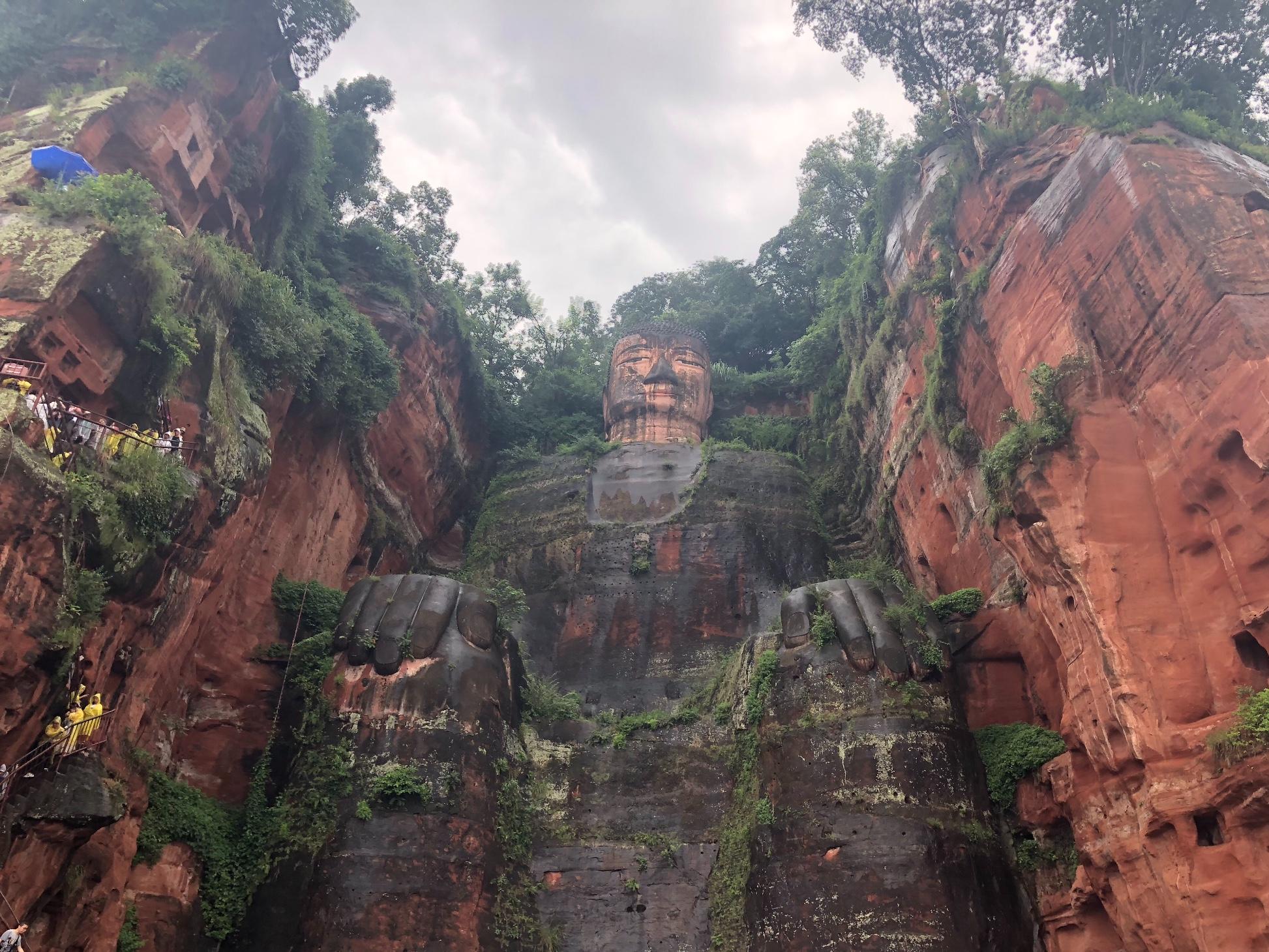 乐山大佛是唐代摩岩造像中的艺术精品之一,是世界上最大的石刻弥勒佛坐像。大佛双手抚膝正襟危坐的姿势,造型庄严,排水设施隐而不见,设计巧妙。