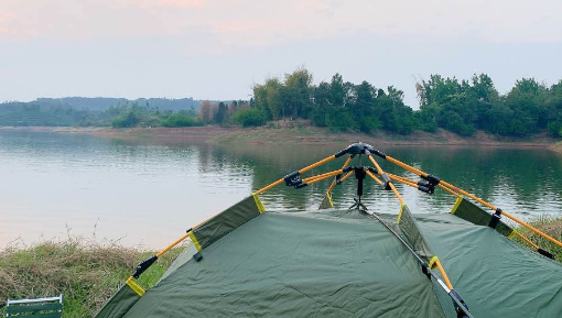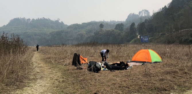 位于新都斑竹园镇秦樱园内的狐河营地,从市区出发三四十分钟就能到达;整个营地是被两三百亩樱花树环绕的近百亩大草坪,草坪边上就是樱花树和湖水。