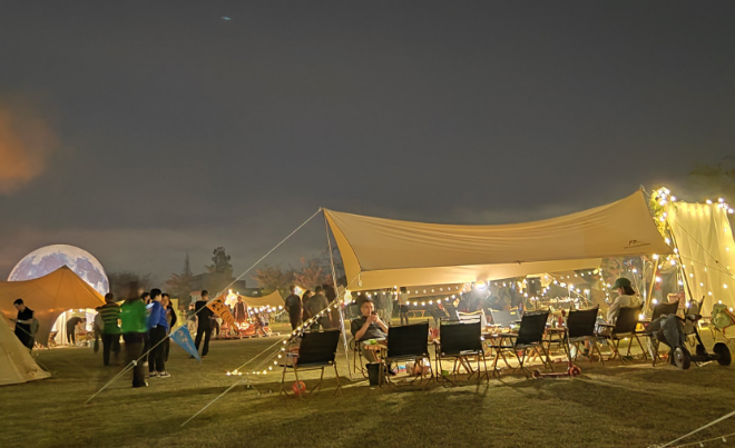 木兰山营地是一处和设施都非常成熟的露营地,这里离市区很近,游客开车一小时就能拥有一场轻松完美的露营体验;入夜后营地的灯亮起,氛围感拉满。
