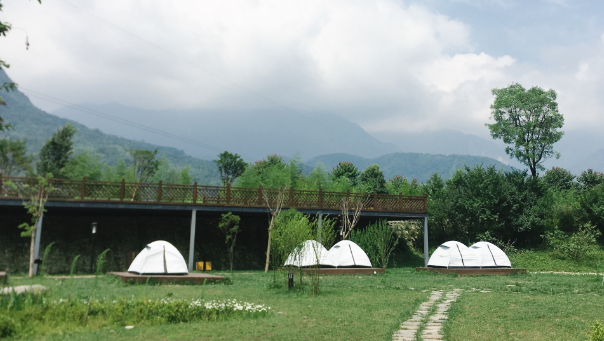 什邡冰川镇是吸氧换肺休闲养生的别院,营地可供露营的方式很多,房车露营、帐篷露营、食堂露营;在这里游客可以感受到迎面而来的风温和凉爽,可见鸡鸭信步闲走,十分的惬意。