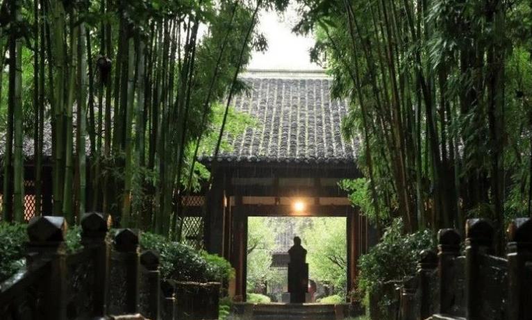草堂位于成都市西门外的浣花溪畔,园内亭台林立,古木参天。从正门进入后,大廨、诗史堂、工部祠三座主要建筑物由南至北依次排列于中轴线上。
