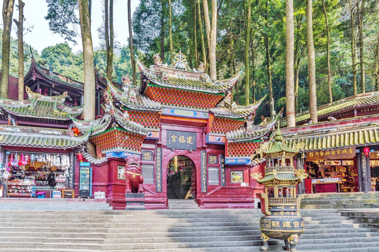 青城山是我国著名的道教名山、中国道教的发源地之一。东汉顺帝汉安二年,天师张陵来到青城山,看中青城山的深幽涵碧,便在此结茅传道,青城山遂成为道教的发祥地之一,被道教列为“第五洞天”。青城山的道教宫观以天师洞为核心,包括建福宫、上清宫、祖师殿、圆明宫、老君阁、玉清宫、朝阳洞等至今完好地保存有数十座道教宫观。