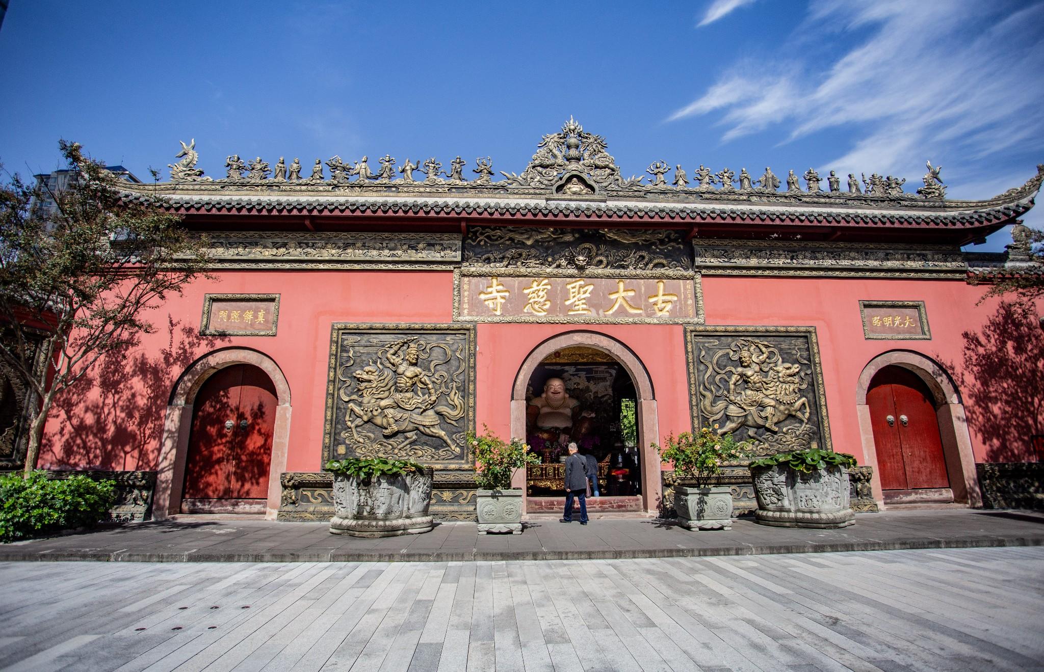 大慈寺也叫古大圣慈寺,位于四川省成都市锦江区东风路一段,始建于魏、晋,极盛于唐、宋,历史悠久、文化深厚、规模宏大、高僧辈出、世传为“震旦第一丛林”,相传始建于隋朝,唐玄宗赐匾“敕建大圣慈寺”。唐代名僧玄奘曾在这里受戒。