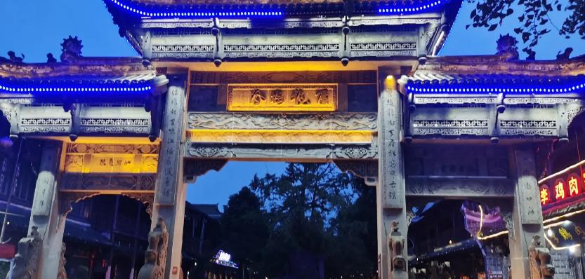 古镇现存以江城街为中心的六条街,街两边多为清代中晚期遗留下来的古建筑。民居布局,单檐青瓦,前店后院,建筑古朴而精巧。街道两侧开着各色店铺,售卖古镇特色美食汤麻饼等,不妨买一个拿着边吃边走。