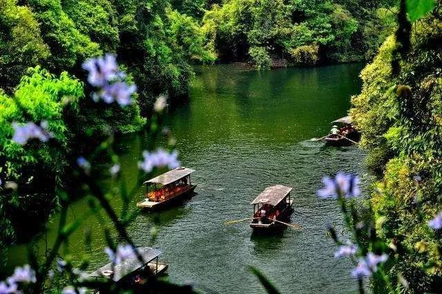 石象湖位于成都市蒲江县境内,湖泊坐落在原始森林之中,湖面港湾众多,乘坐乌篷船泛舟湖上,是感受湖光山色的最佳方式。景区种植有数十种花卉,在每年三月郁金香节期间,漫山遍野盛开着数百万株郁金香。