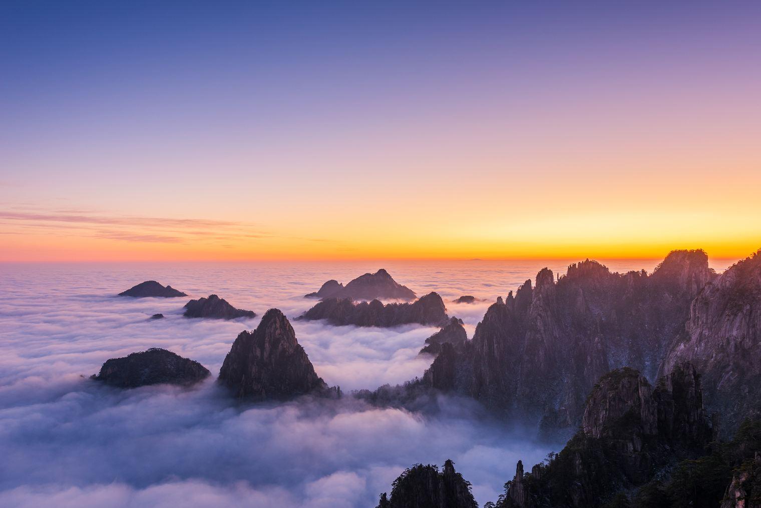 1.黄山:世界文化与自然双重遗产,世界地质公园,国家AAAAA级旅游景区,国家级风景名胜区,全国文明风景旅游区示范点,中华十大名山,天下第一奇山。黄山位于安徽省南部黄山市境内,有72峰,主峰莲花峰海拔1864米,与光明顶、天都峰并称三大黄山主峰,为36大峰之一。黄山是安徽旅游的标志,是中国十大风景名胜唯一的山岳风光。