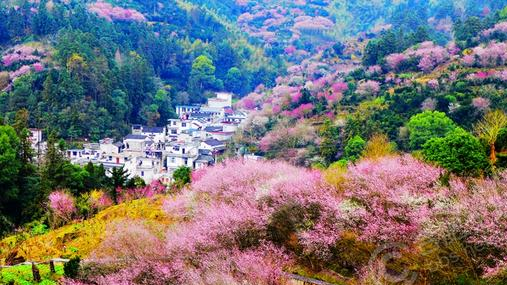 梅花盛开之后,整个村子就像是绽放的花海,随处都散发出花香味,还有一些散放下来的花瓣。整个的画面让人如痴如醉,让人陶醉不已,还能拍摄出壮观唯美的画面。
