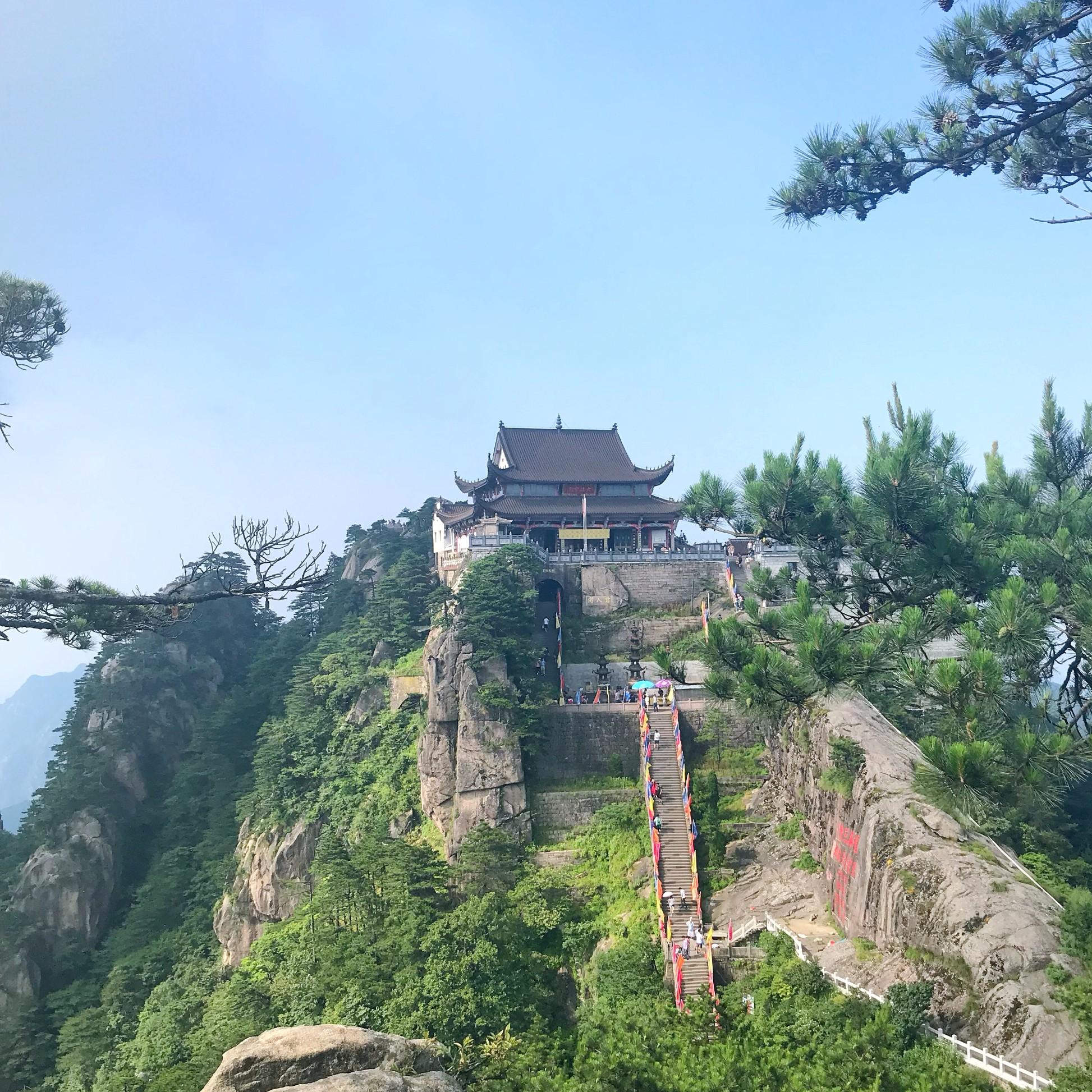 九华山有两个上山项目。天台索道和百岁宫缆车。如果想到千年古寺百岁宫拜真身、结佛缘,俯瞰“佛国莲花”之神韵,那么建议乘坐百岁宫缆车。能登上海拔千米的百岁宫峰巅。