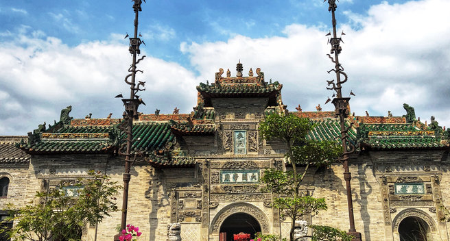 花戏楼位于亳州城北关,涡水南岸,原名大关帝庙,又称山陕会馆。据清乾隆三十二年(公元1767年),《重建大关帝庙碑记》称:亳州北关大关帝庙,建于国朝顺治十三年(公元1656年),是全国重点文物保护单位。乾隆四十九年《重修大关帝庙碑记载:“乾隆三十一年(1766年)建新大殿,增置座楼,藻采歌台,固已极规模之宏敞,金碧之辉煌矣。”这当是东西座楼建始,戏楼增加藻井彩绘。又乾隆四十一年碑记:“关帝庙特华内极雕缕藻绘之工,游市廛者每瞻不能去。”戏楼木雕及门墙砖雕,据考证最迟不会晚于乾隆四十一年(公元1776年),现存花戏楼原貌应是这个时期的艺术建筑,可见当时戏剧盛行,舞台与戏院建造都十分讲究。