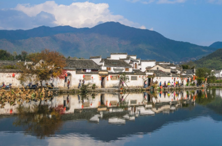 宏村北倚雷岗山,东、西有东山、石鼓山,山体植被茂盛,村南地势开阔,建有大面积的池塘——南湖。村落分布基本上保持坐北朝南,村址处于山水环抱的中央,形成枕高山面流水的“枕山、环水、面屏”的理想风水环境。随着封建经济的发展,文化的繁荣,作为程朱理学发祥的徽州也达到了极盛时期。汪姓祖先在外做官、营商者大增,他们积累了大量的资金财富,为光宗耀祖,纷纷在家乡购田置屋,修桥铺路,形成了1401—1620年和1796—1911年宏村建设的两次高潮。